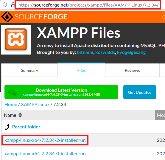 https://sourceforge.net/projects/xampp/files/XAMPP%20Linux/7.2.34/