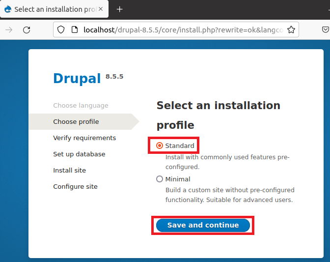 Step 10: Select an installation profile, choose standard and click on “Save and Continue” button.