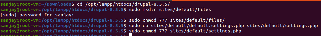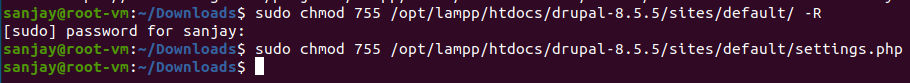 sudo chmod 755 /opt/lampp/htdocs/drupal-8.5.5/sites/default/ -R