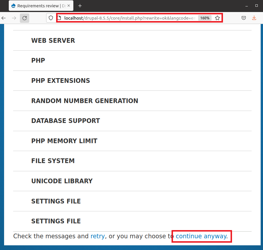 Step 13: Refresh the page in Step 11 and go bottom of the page and click on “continue anyway” link as shown below: