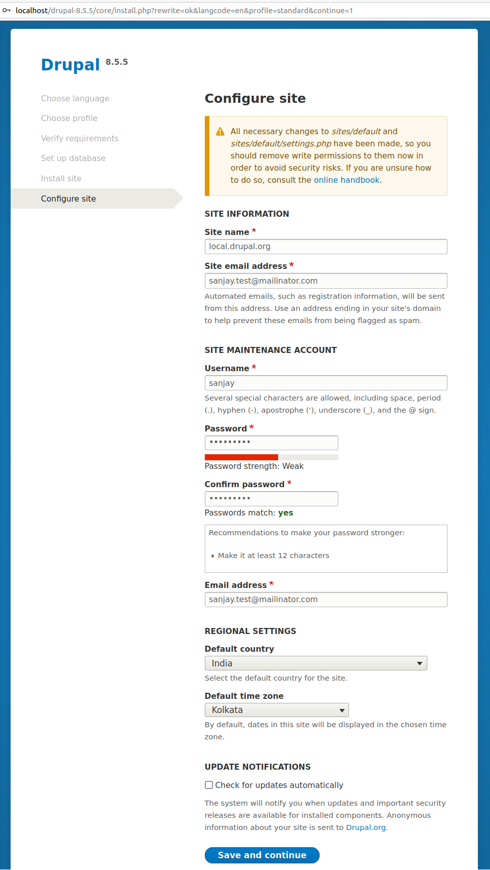 Step 16: Configure the settings for drupal and it suggest to reset the permission.