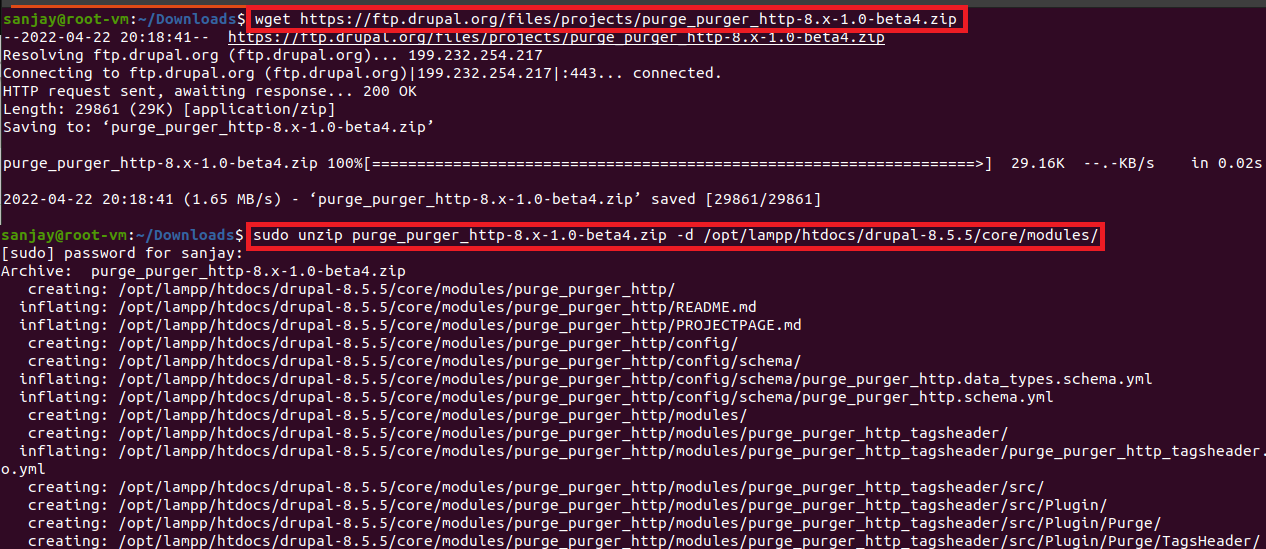sudo unzip purge_purger_http-8.x-1.0-beta4.zip -d /opt/lampp/htdocs/drupal-8.5.5/core/modules/