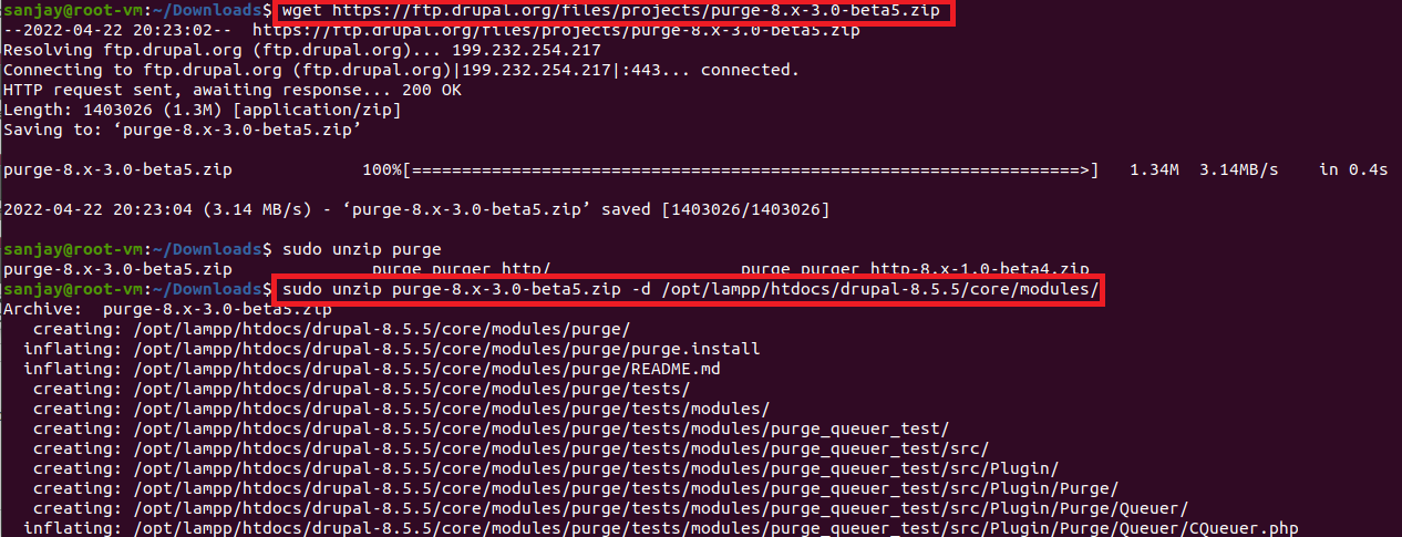 sudo unzip purge-8.x-3.0-beta5.zip -d /opt/lampp/htdocs/drupal-8.5.5/core/modules