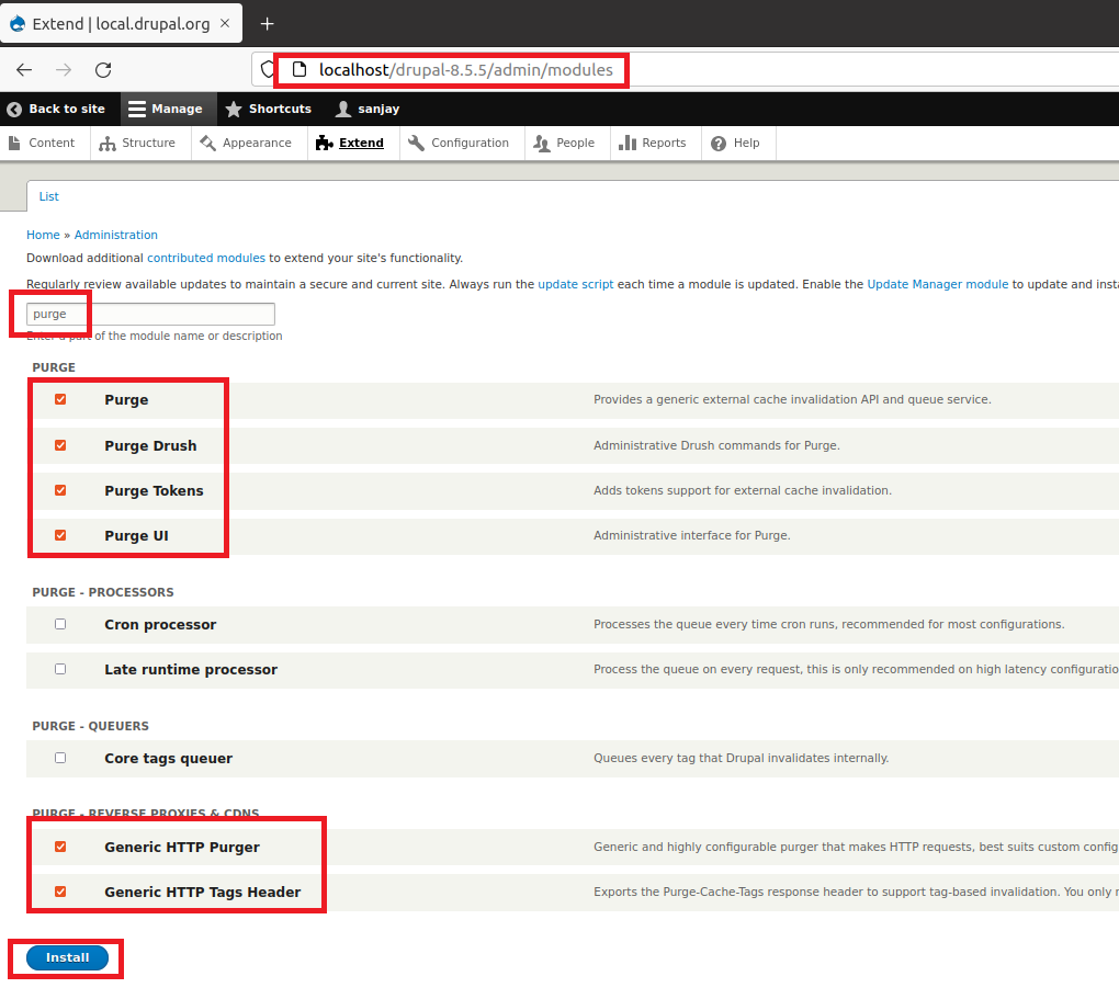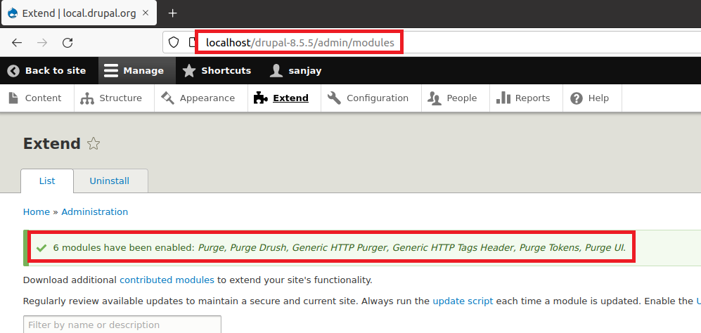 Step 20: To configure varnish external cache for drupal we have to install drupal modules.