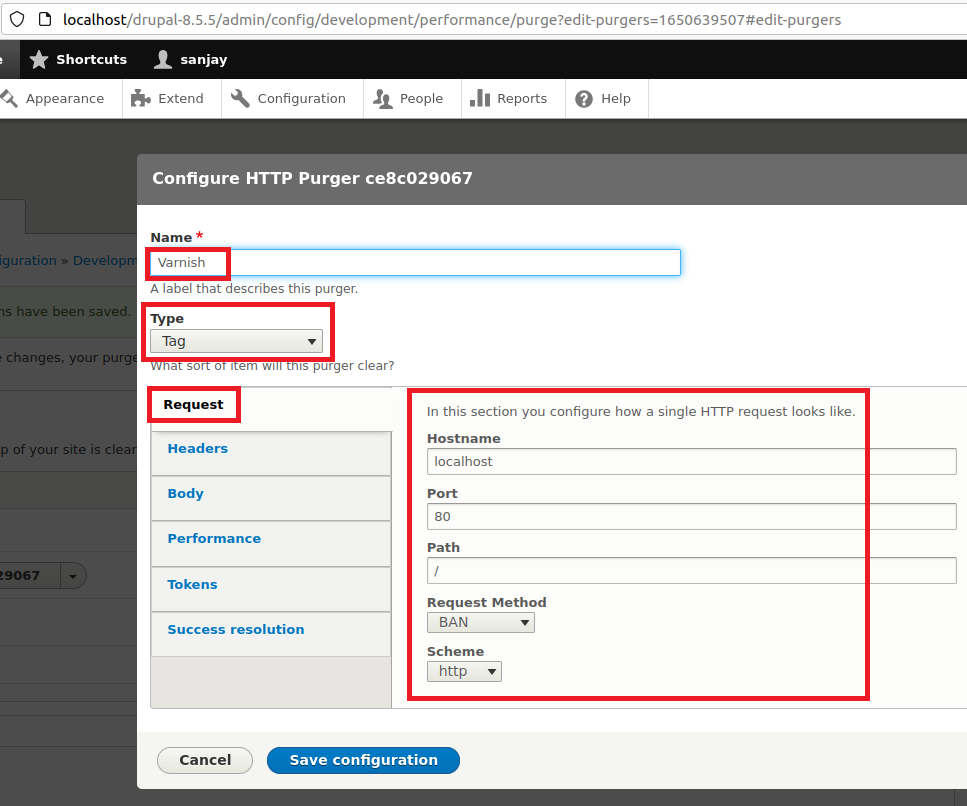 Step 35: Create the following cache entry in external varnish cache and internal drupal 8 cache.