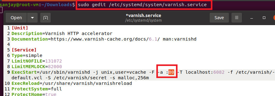 sudo gedit /etc/systemd/system/varnish.service