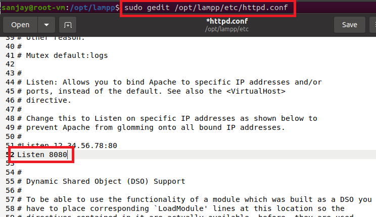 Step 31: Change the apache port from 80 to 8080.