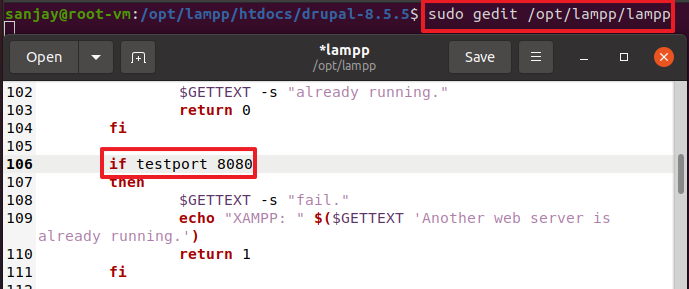 sudo gedit /opt/lampp/lampp