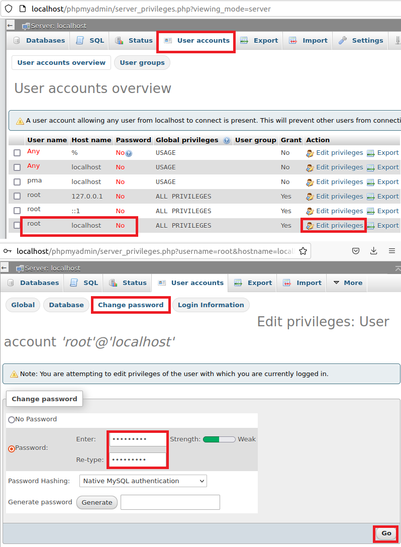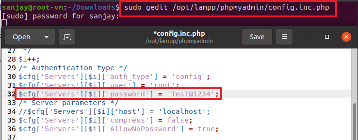 - sudo gedit /opt/lampp/phpmyadmin/config.inc.php
