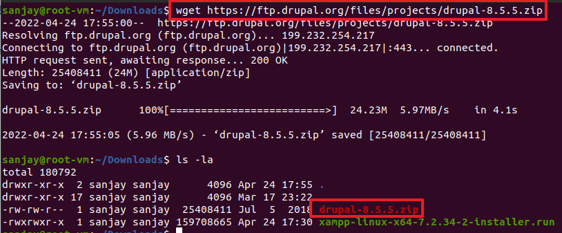wget https://ftp.drupal.org/files/projects/drupal-8.5.5.zip