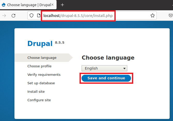 Step 9: Navigate to http://localhost/drupal-8.5.5 which will redirect to http://localhost/drupal-8.5.5/core/install.php for installation.