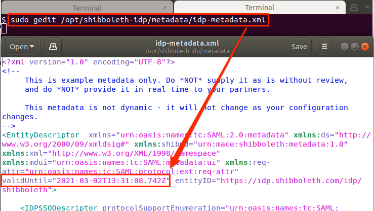 Copy to: sudo cp Metadata /opt/shibboleth-idp/metadata/sp-metadata.xml
